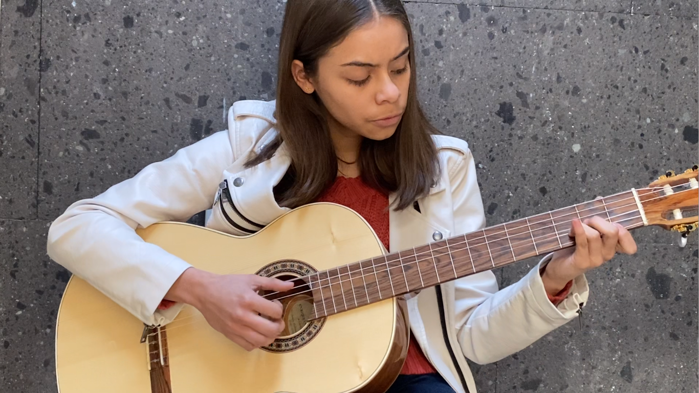 Guitarra Metodología Clases personalizadas en línea Sesiones individuales de 1 hora Dos sesiones semanales Cristina Silva- Profesora Para más información escríbenos a 2.7teatro@gmail.com